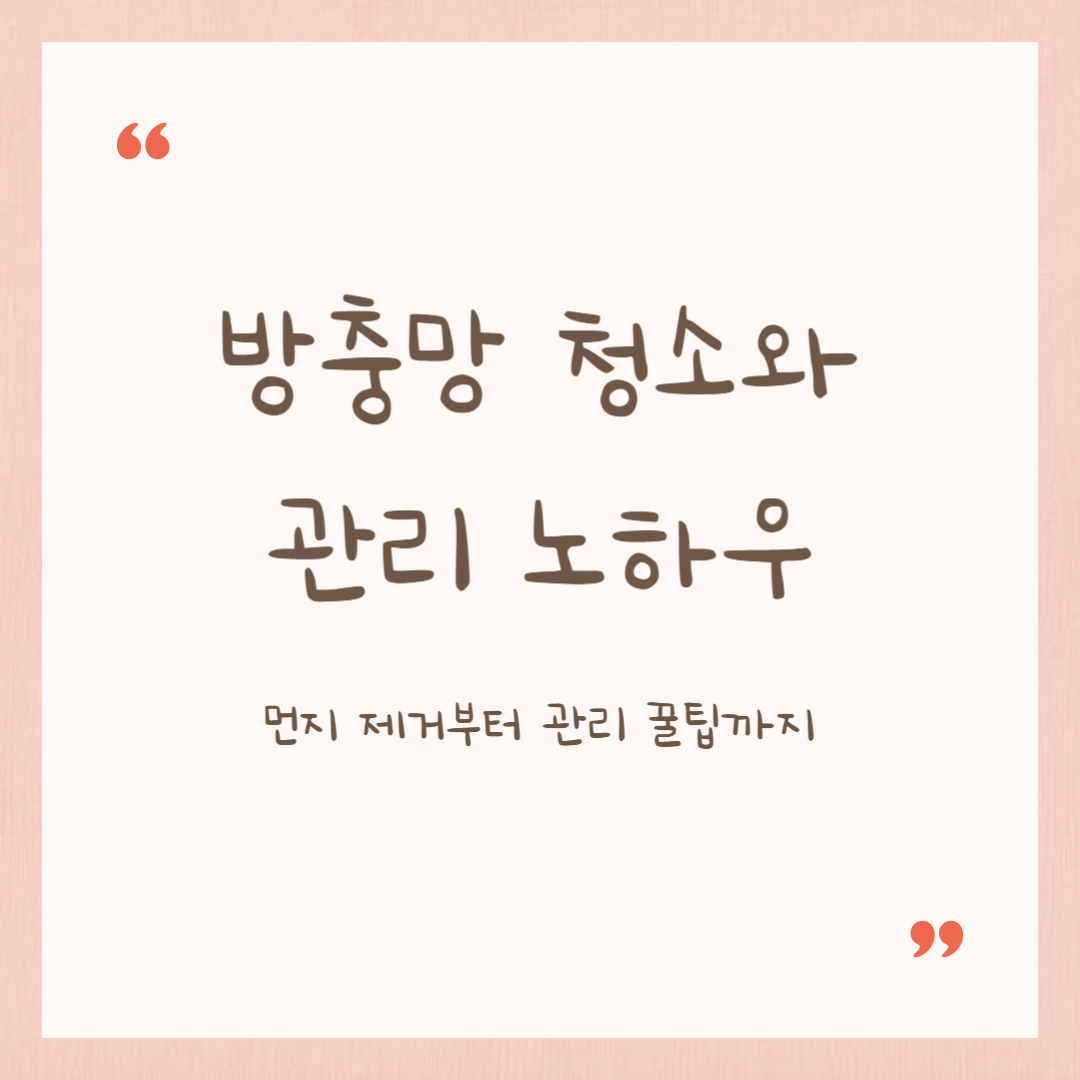 방충망 청소와 관리는 단순히 벌레를 막는 걸 넘어서, 집 안 공기의 질을 높이고 생활의 쾌적함을 더해주는 중요한 역할을 해요. 처음에는 번거롭게 느껴질 수 있지만, 주기적으로 관리하면 방충망의 수명도 늘어나고 집안 공기도 더 맑아질 거예요! 😊