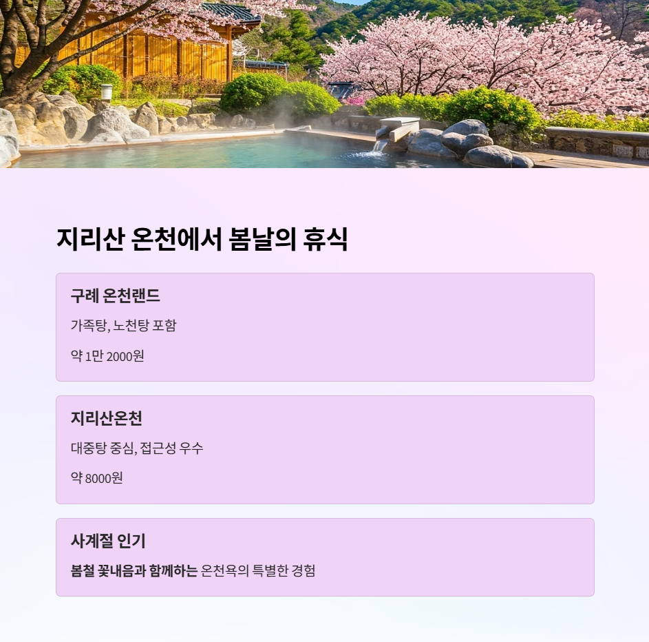 지리산 온천관광지는 사계절 내내 인기 있는 힐링 공간입니다.