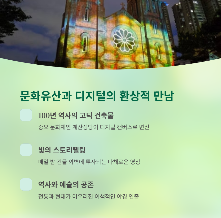밤하늘을 수놓는 빛의 성당, 계산성당 미디어파사드는 어떤 매력일까?