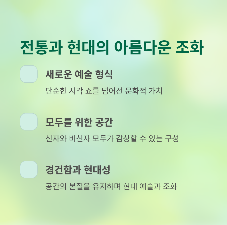 지역 문화의 가치와 종교적 상징을 연결하는 새로운 예술 형식입니다.