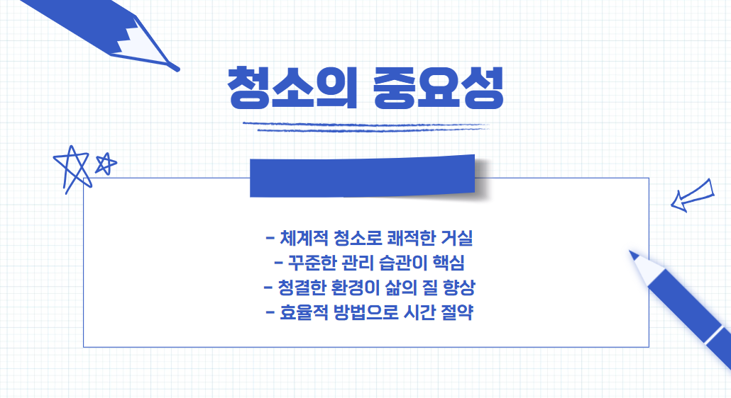 - 정기적인 청소 루틴 만들기 월별, 주별 청소 계획을 세우고 꾸준히 실천하면 청소가 더 쉬워져요!