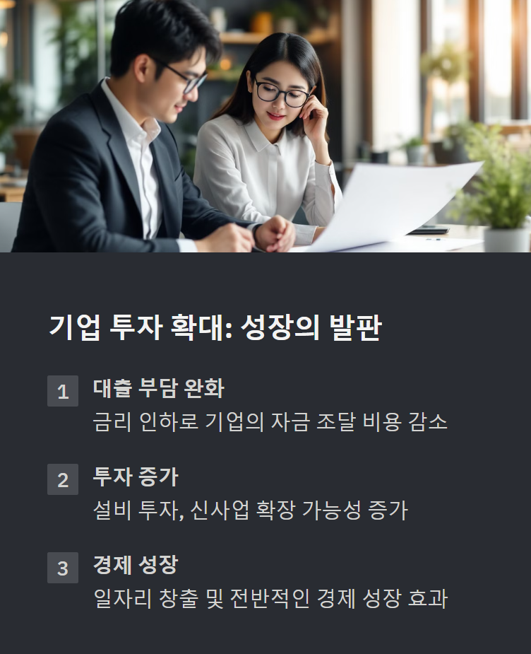 기업들은 금리가 낮아지면 저렴한 비용으로 자금을 조달할 수 있어요.