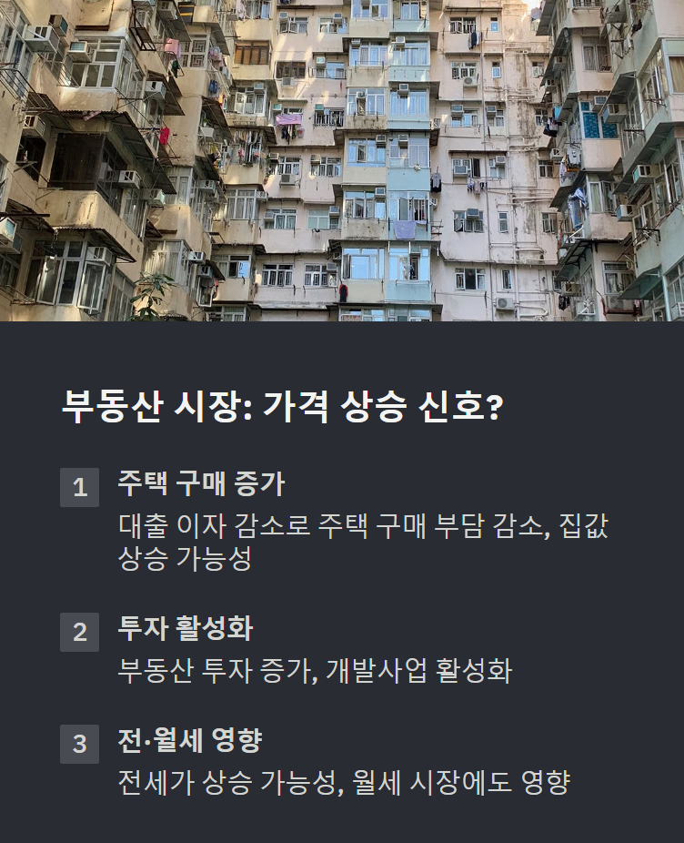 - 소비 증가, 기업 투자 활성화, 부동산 시장 상승 가능성