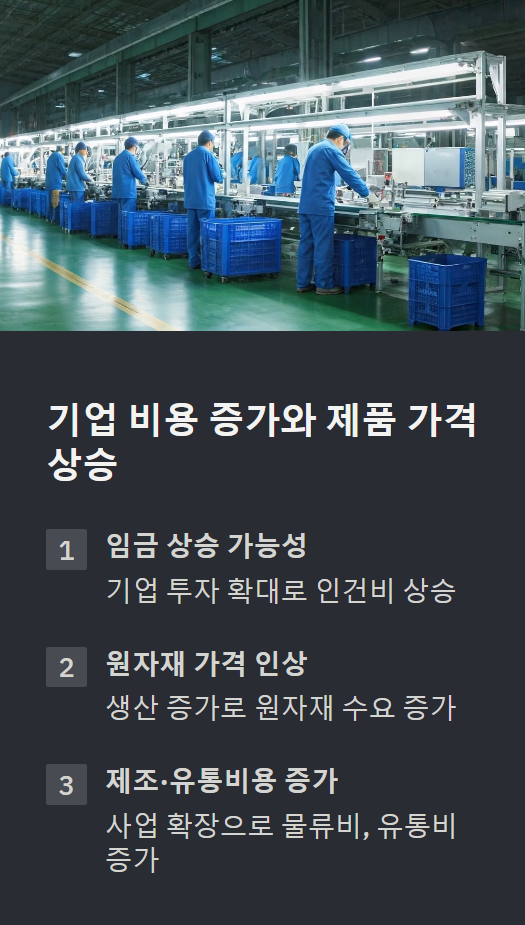 기업이 부담하는 비용이 커지면, 결국 제품 가격이 상승할 가능성이 높아지고 이는 물가 상승으로 이어질 수 있어요.