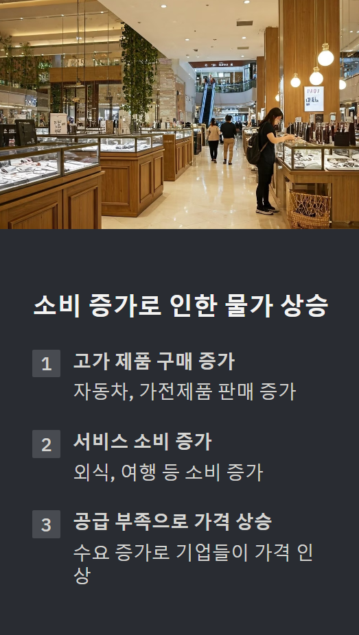 소비 증가로 인해 기업들이 가격을 올리면서 물가가 상승할 가능성이 커지는 거죠.