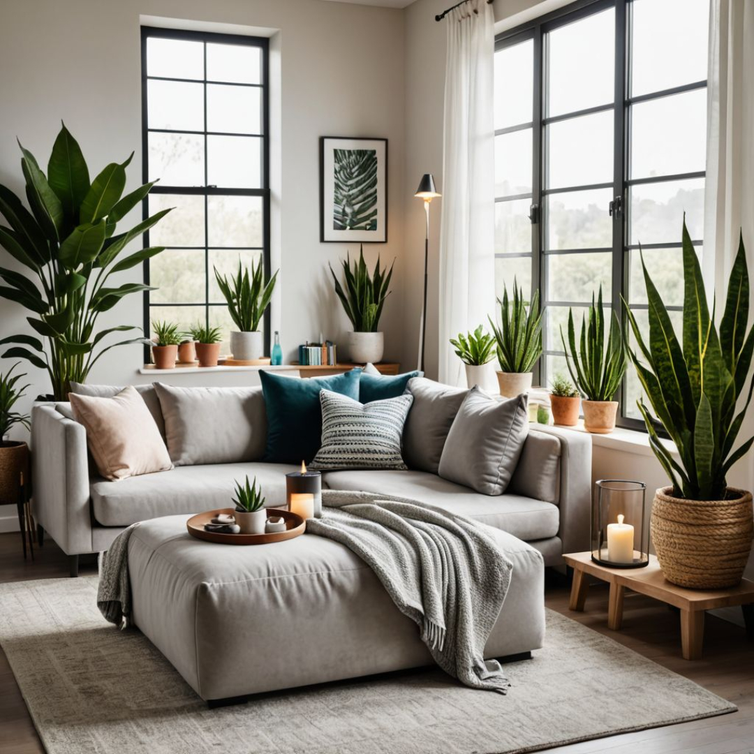 - 산세베리아와 아레카야자가 배치된 아늑한 인테리어