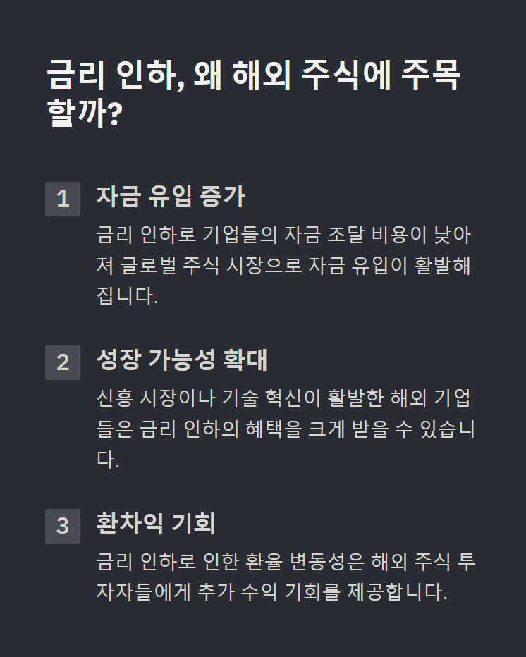 금리 인하 시대에는 해외 주식 투자가 매력적인 선택이 될 수 있어요.