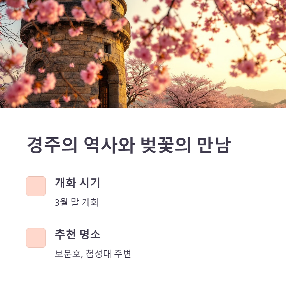 3월 24일부터는 진해의 벚꽃 명소들이 여행객을 맞이합니다. 진해 군항제는 특히 유명한 봄 축제로, 경화역과 여좌천은 벚꽃으로 뒤덮인 풍경이 압도적인 아름다움을 선사하죠. 경주에서는 보문호와 첨성대 주변이 벚꽃으로 물들며 고즈넉한 분위기 속 봄을 즐기기에 좋습니다. 서울은 4월 초 여의도 윤중로와 남산공원에서 벚꽃을 볼 수 있어 도심 속에서도 봄의 정취를 느낄 수 있습니다. 지역별로 개화 시기가 다르기 때문에 여행 일정을 맞춰 연속적으로 벚꽃을 따라 여행하는 것도 추천드립니다.