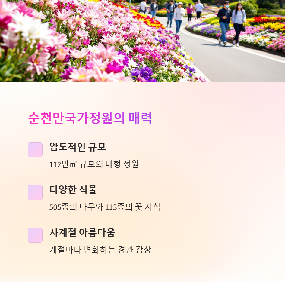 여행을 떠나고 싶은 계절, 봄이 왔습니다. 따뜻한 햇살과 산들바람이 어우러지는 이 계절에 어딘가로 떠나고 싶으시다면, 이번에 소개할 순천 여행 코스에 주목해 보세요. 순천은 자연과 도시의 매력이 공존하는 전남 대표 관광 도시로, 특히 순천만국가정원과 순천아랫장야시장은 하루 코스로 다녀오기 딱 좋은 명소입니다. 오전에는 드넓은 정원을 산책하며 힐링을, 해가 진 후에는 야시장에서 맛있는 먹거리와 공연을 즐길 수 있어 커플, 가족, 친구 누구와 함께해도 만족할 수 있는 구성입니다. 자연을 좋아하는 분, 사진 찍는 걸 즐기는 분, 또는 먹방 여행을 선호하는 분이라면 이번 코스가 제격입니다. 오늘은 이 두 곳을 어떻게 효율적으로 여행할 수 있을지, 이동 동선과 팁까지 자세히 알려드릴게요. 여행 일정을 계획 중이라면 이 글을 끝까지 읽고 순천 여행의 감성을 미리 느껴보세요.