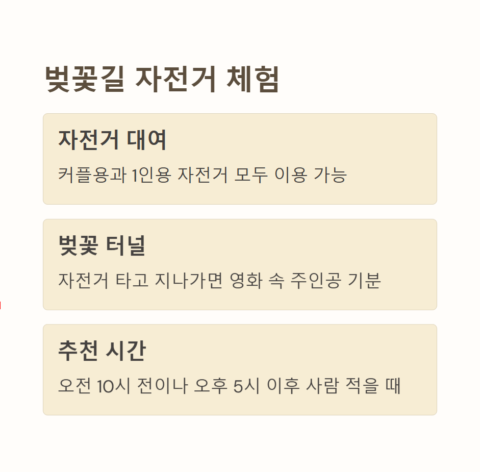 이색체험 : 벚꽃길 자전거 타기, 포토존 촬영