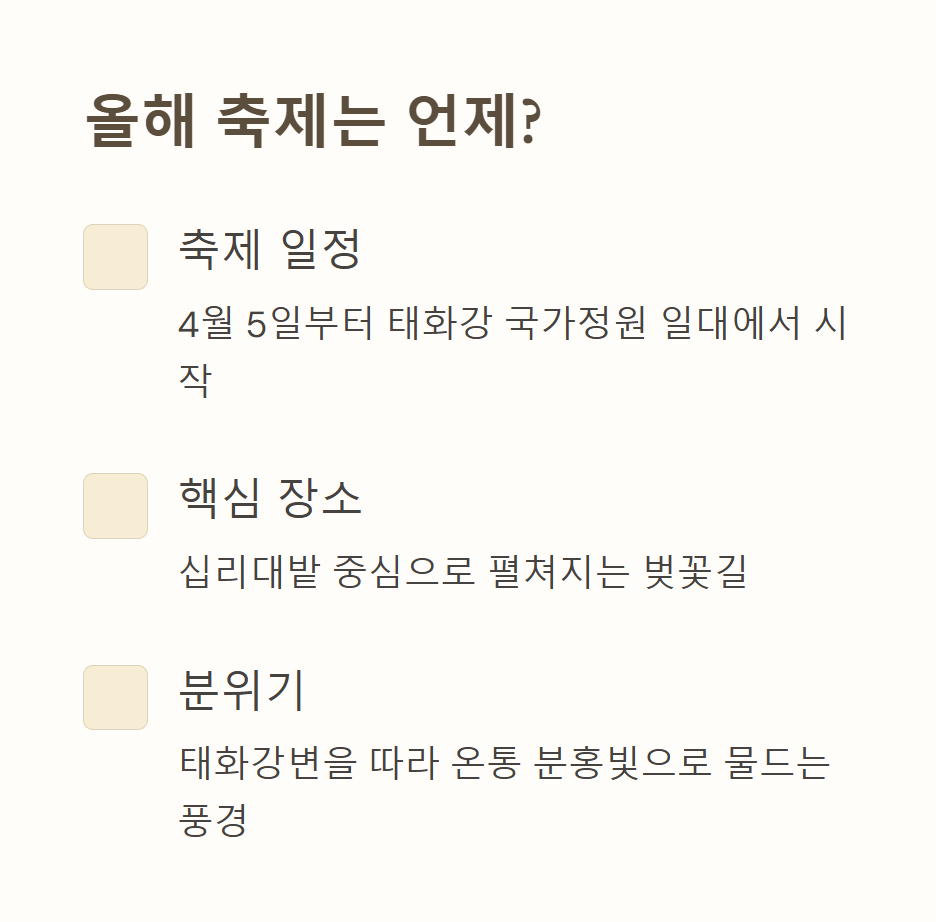 1. 태화강 벚꽃축제, 올해는 언제 열릴까요?