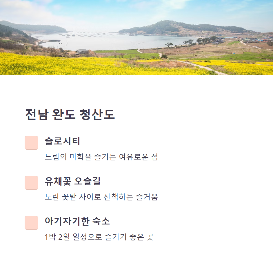 3. 전남 완도 청산도 _ 유채꽃 가득한 그림 같은 섬