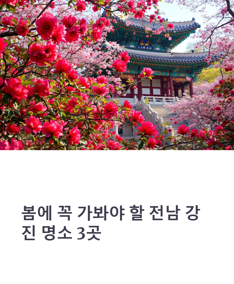 전라남도 강진.이름만 들어도 마음이 차분해지는 고장인데요.요즘처럼 꽃 피는 계절엔 더더욱 찾고 싶은 곳이에요.특히 봄에는 강진에서 꼭 들러야 할 명소가 있답니다.바로 백련사 동백꽃 군락지와 다산초당이에요.여기 다녀온 후기를 저만 알기 아까워서 이렇게 소개드려요. 😊동백꽃의 절정, 백련사에서 만난 붉은 봄강진 백련사는요.아주 오래된 사찰이자 동백꽃 명소로 손꼽히는 곳이에요.입구에 들어서면 나무 데크길이 쭉 이어지는데,그 양옆으로 동백나무가 빼곡하게 들어서 있어요.그 수가 무려 1,500그루나 된다고 하더라고요.이 동백나무 군락은요.그냥 보기만 해도 입이 절로 벌어질 만큼 아름답답니다.3월 중순부터 말까지가 절정인데요.빨갛게 핀 동백꽃이 나무마다 활짝 피고,바닥엔 꽃잎이 떨어져 융단처럼 깔려있어요.하늘도,..